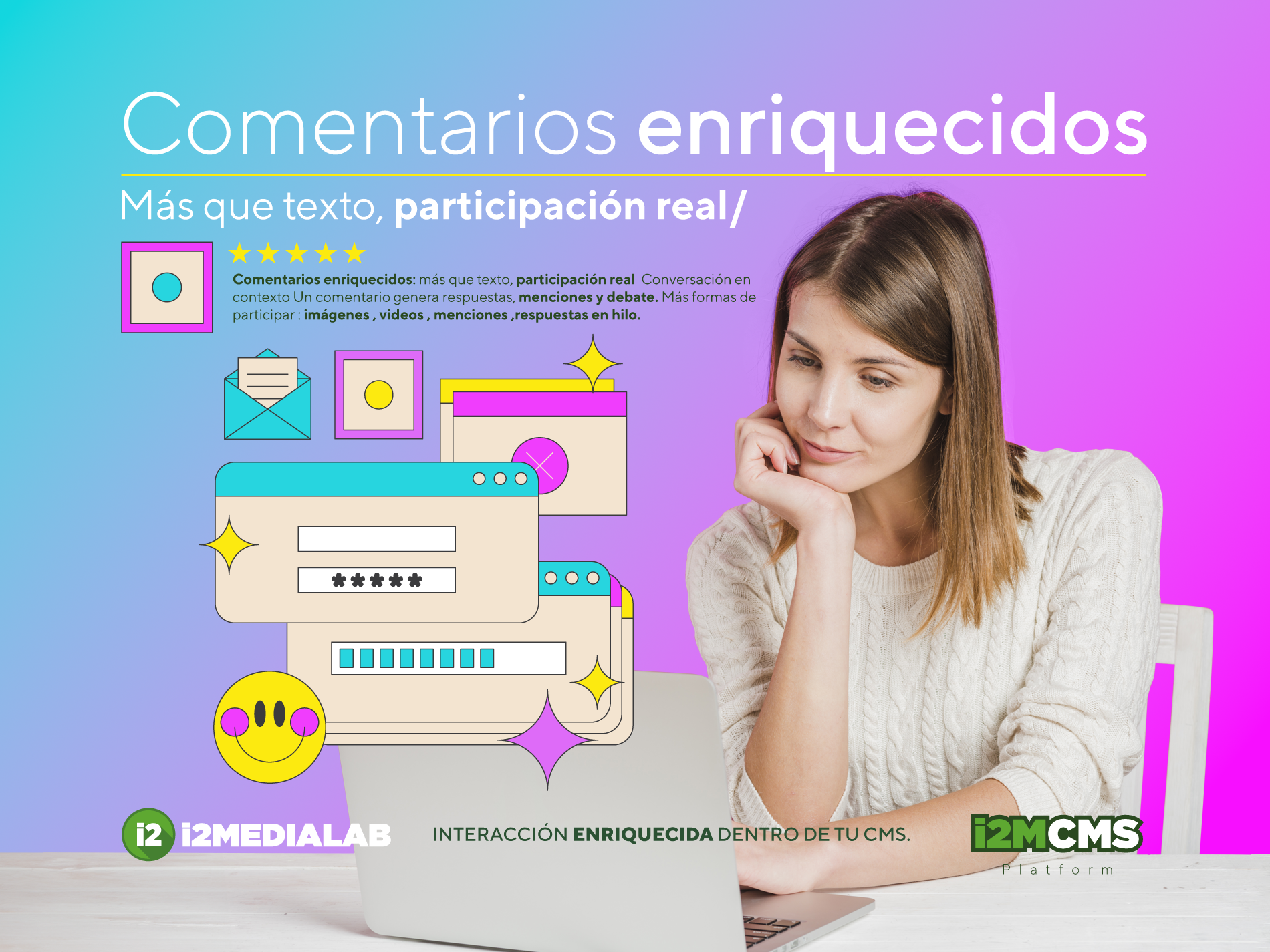 Por eso, i2mcms incorpora comentarios enriquecidos que van mucho más allá del texto plano.